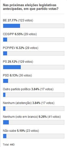 Nas próximas eleições legislativas antecipadas, em que partido votas? Foi esta a questão colocada pelo dezanove aos seus leitores e que obteve 443 respostas.
